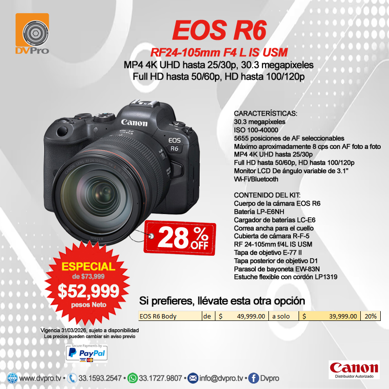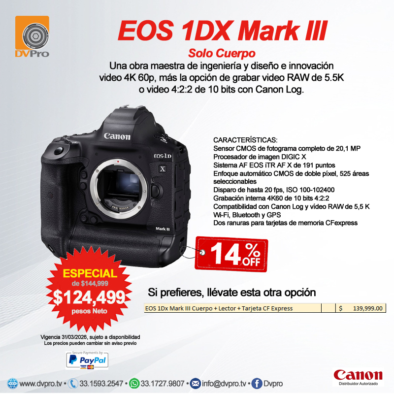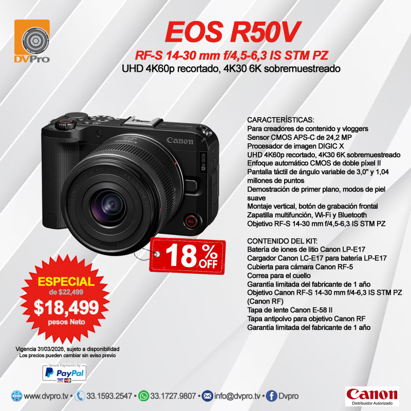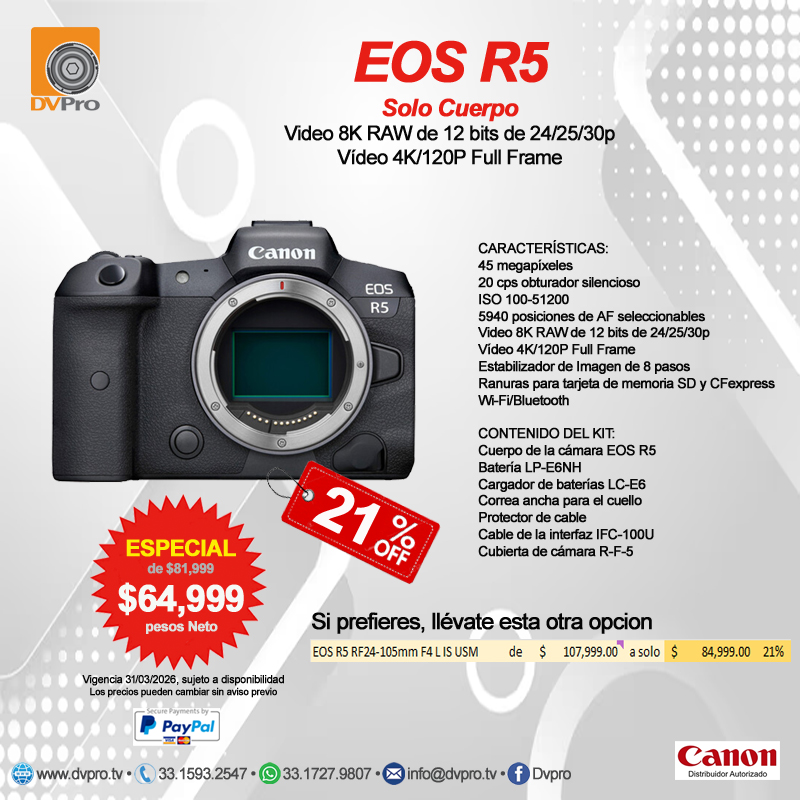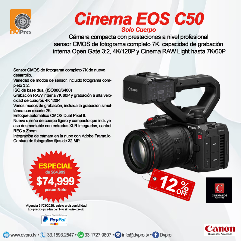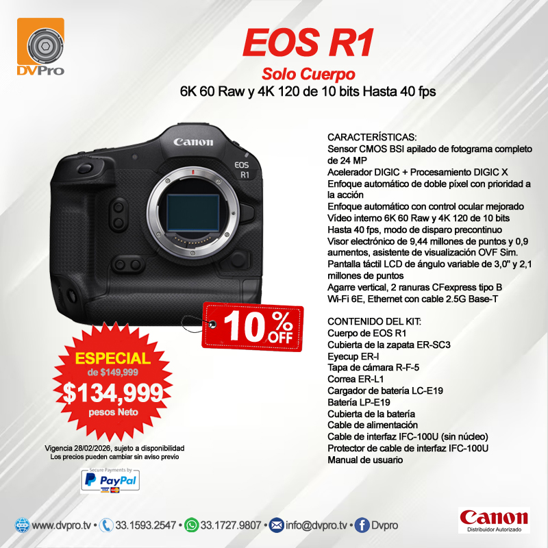 Canon empresa líder mundial en el mercado de la fotografía, cubre el 70% de las ventas de equipos en México y ahora distribuida por DVPro, contamos con Cámaras Fotográfica, Cámaras de Video Profesionales FHD, 4K, SDI o HDMI, Cámaras Para Cine con monturas EF o PL, Lentes para Fotografía y Cine, Impresoras y Ploters para Fotografías, siempre con promociones, descuentos y pagos a Meses Sin Intereses en algunos productos